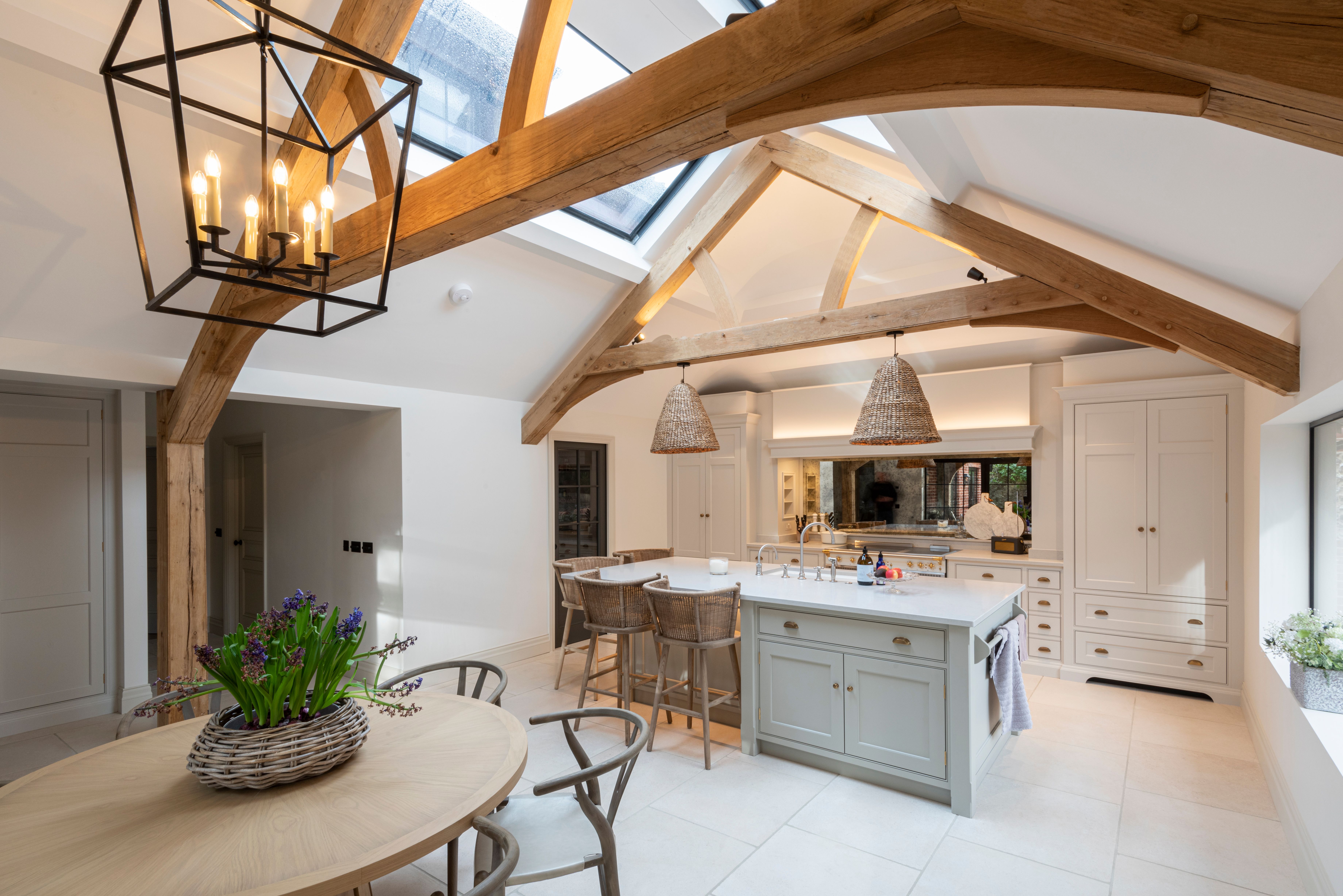 Natural Insulation: Green oak beams provide natural insulation, assisting in maintaining indoor temperatures and reducing energy usage, contributing to enhanced thermal comfort and energy efficiency.